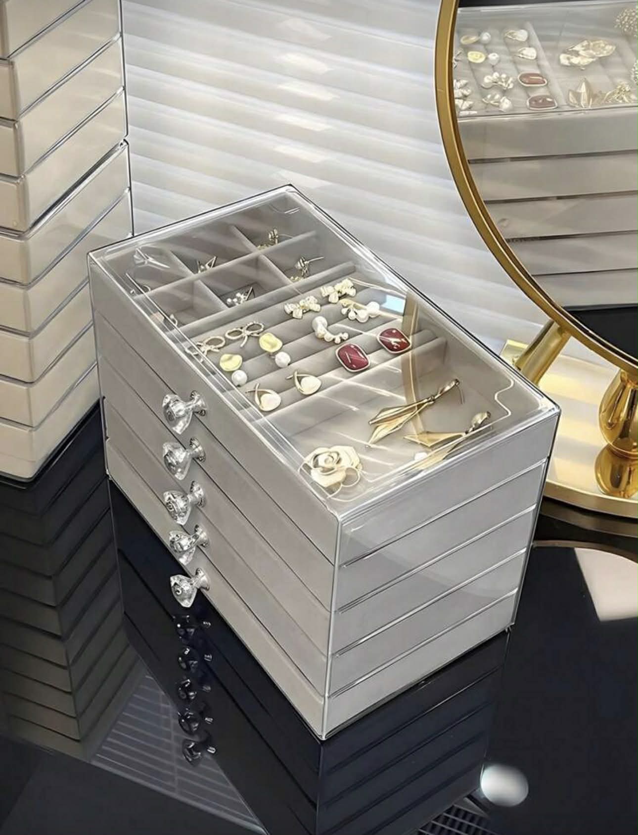 1pc 5-Layer Transparent Acrylic Jewelry Box, Large-Capacity Jewelry Organizer, Drawer-Style Jewelry Storage Display Box With Adjustable Velvet Tray, Suitable For Earrings, Rings, Bracelets, Necklaces, Bracelets, Ideal For Home Jewelry Storage Organization.